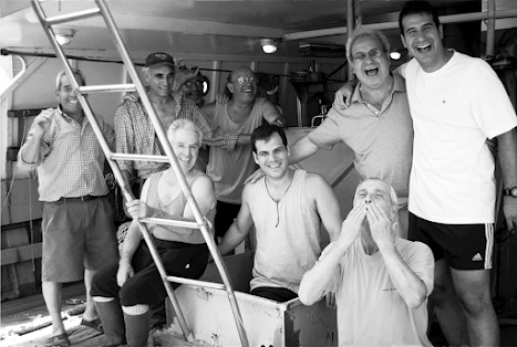 Equipaggio del motopesca Isola Stagnone. Al centro della fila di centro si riconosce Paolo Terramagra